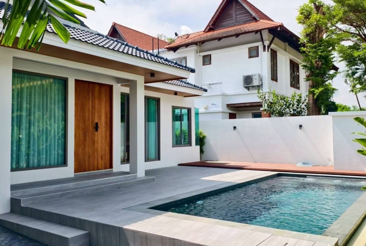 Discover your dream family home in one of Phuket’s most sought-after residential areas. This stunning single-storey pool villa in the prestigious Manee Kram Village offers the perfect blend of modern luxury, convenience, and tranquil island living. Located on Kwang Road in the desirable Chalong-Wichit district, this turnkey property is ideal for families, expats, or savvy investors seeking a premium Phuket residence.