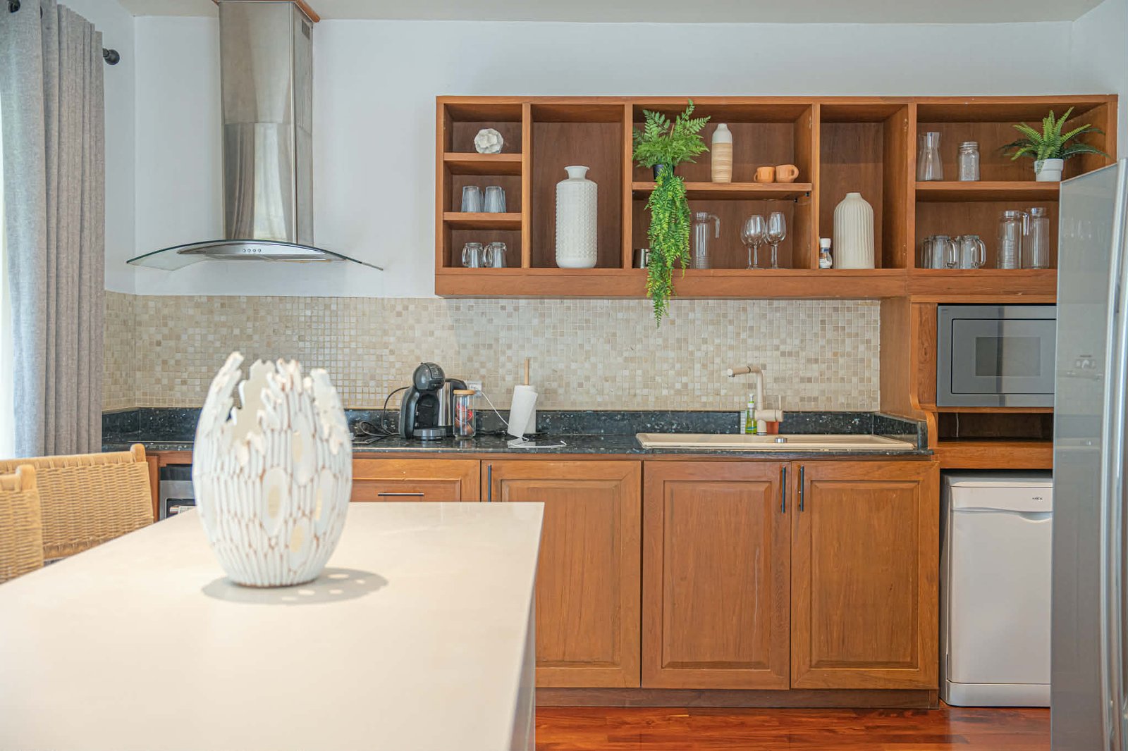 This thoughtfully designed villa features two spacious bedrooms, two modern bathrooms, and an open-plan layout that maximizes natural light and indoor-outdoor flow. Every detail has been carefully selected to deliver both aesthetic appeal and functional comfort for tropical island living.