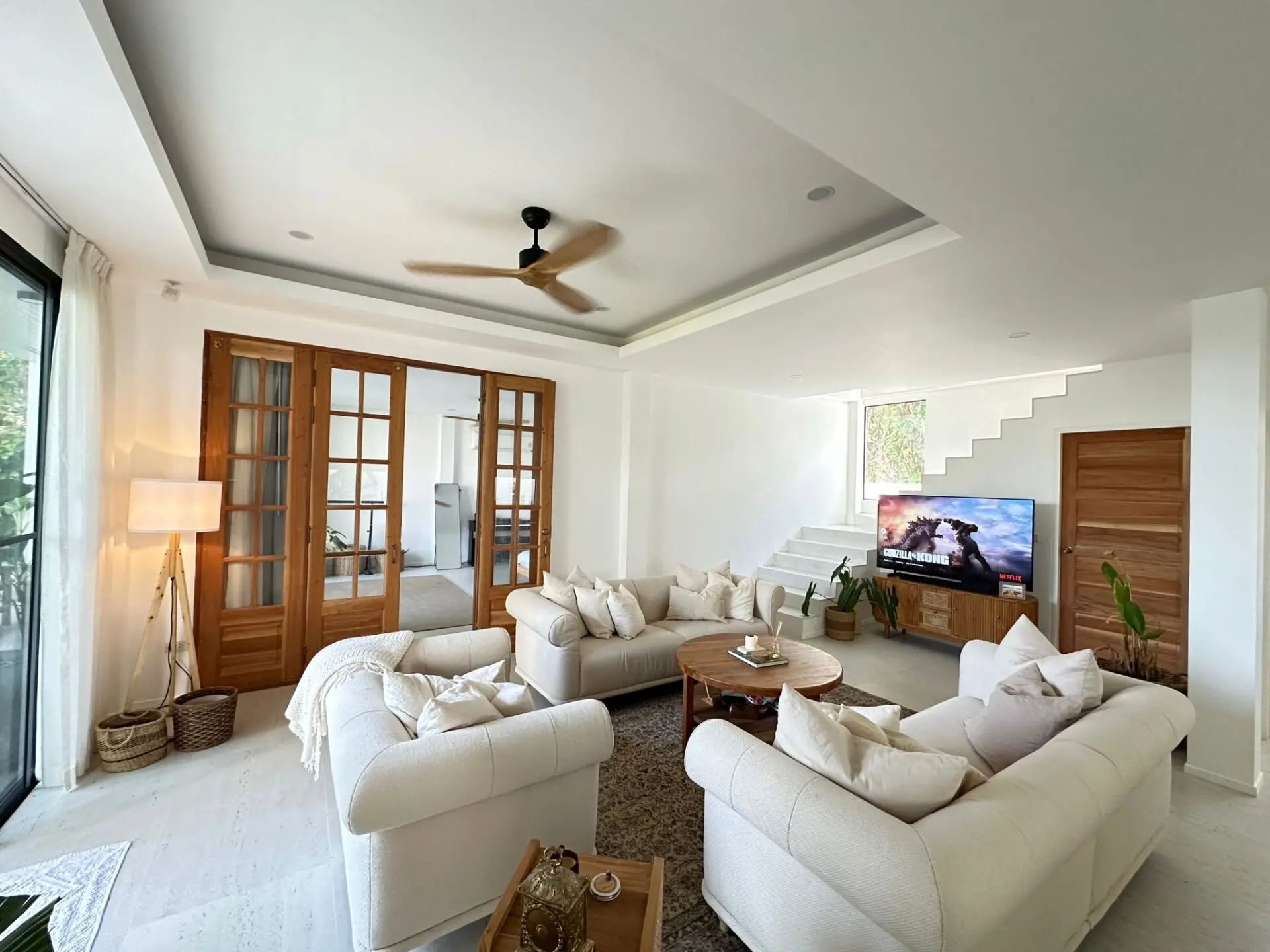 Indulge in the serenity of coastal living with this stunning sea view pool villa nestled in the charming locale of Soi Saiyuan. Boasting 3 bedrooms and 3 bathrooms, this fully furnished retreat offers both comfort and style. Set upon a spacious land area of 324 sqm, the highlight of this property is its inviting 3.5m x 10m x 1.5m swimming pool, perfect for leisurely dips and enjoying the panoramic vistas of the sea. Experience the epitome of cozy in this exquisite villa.