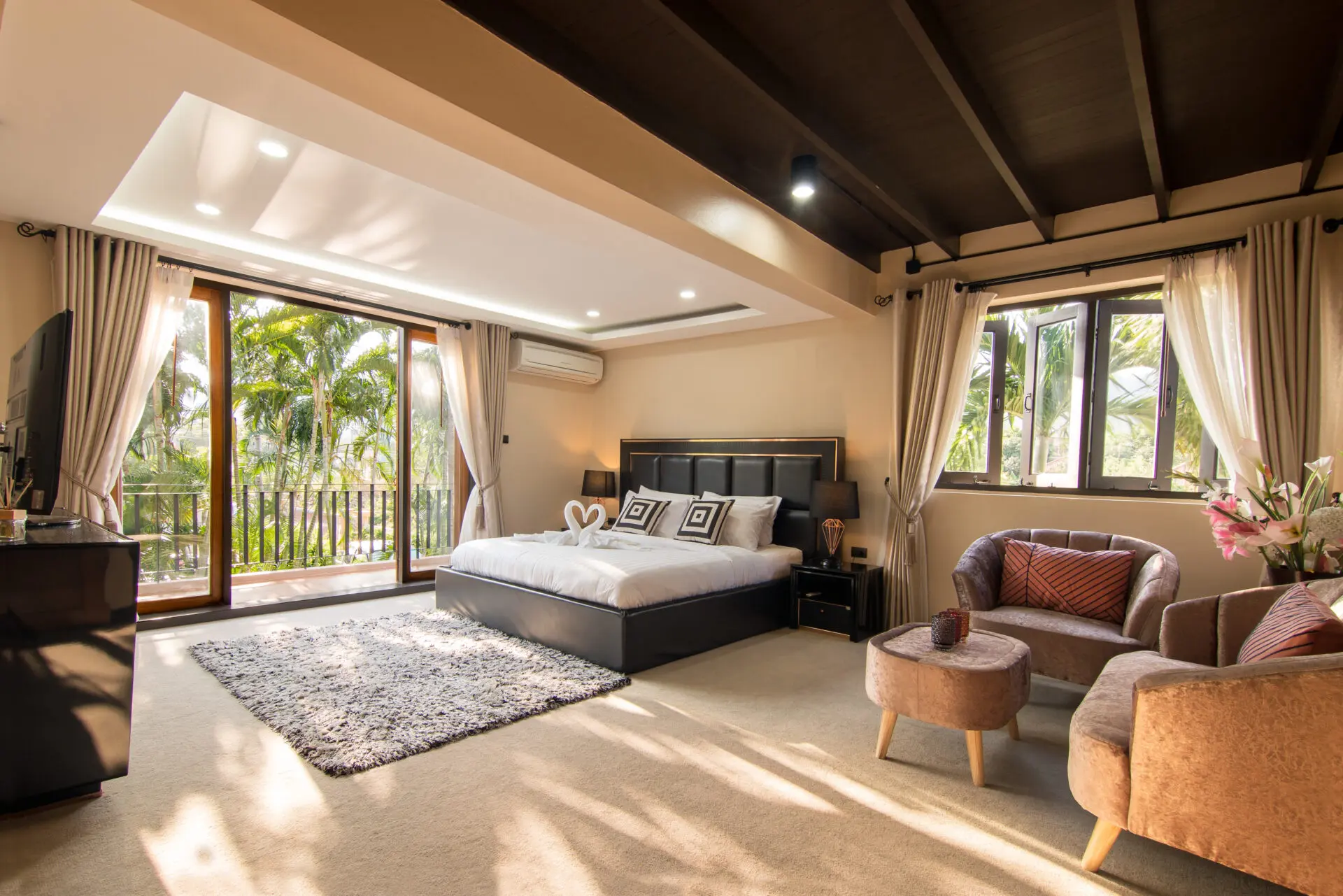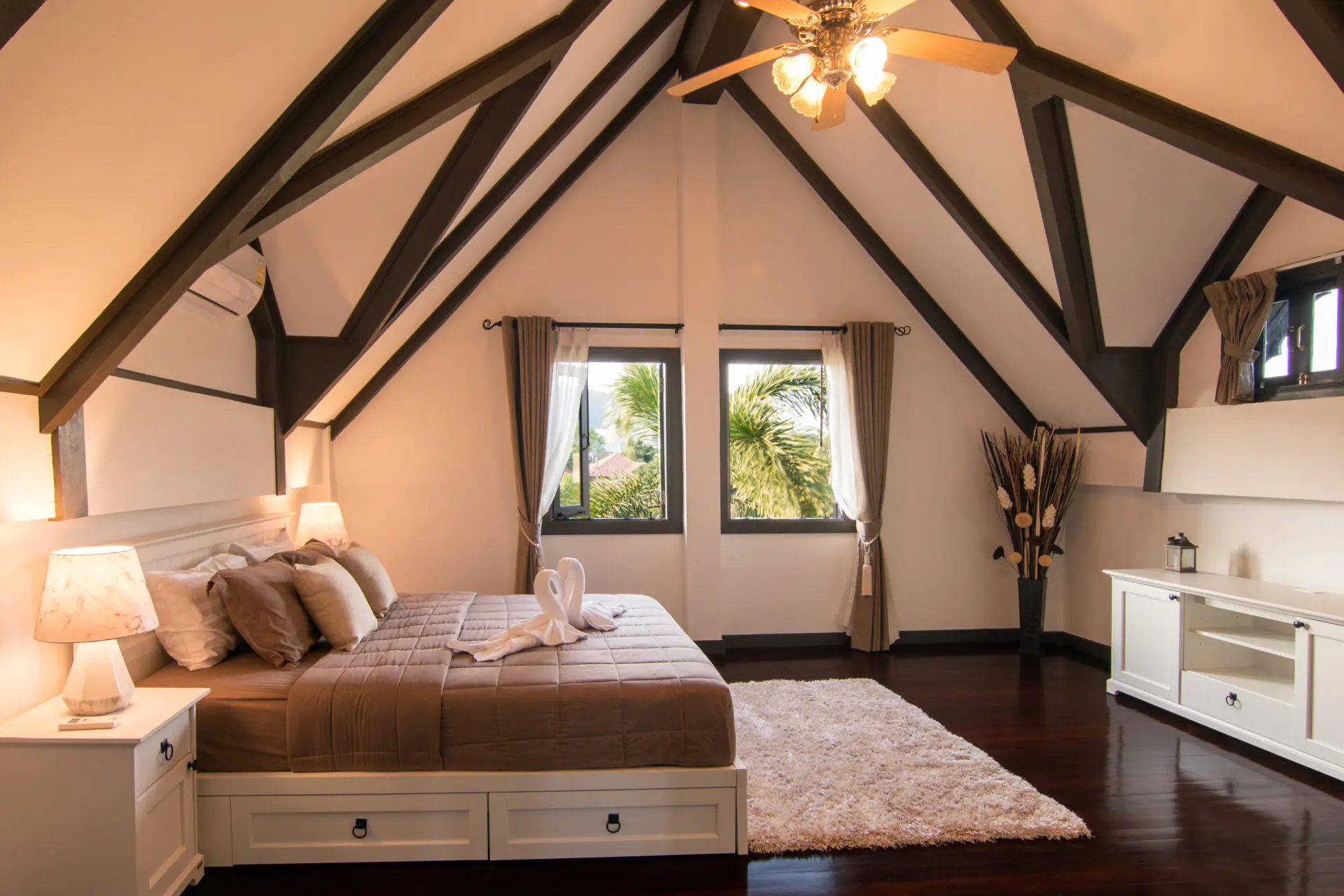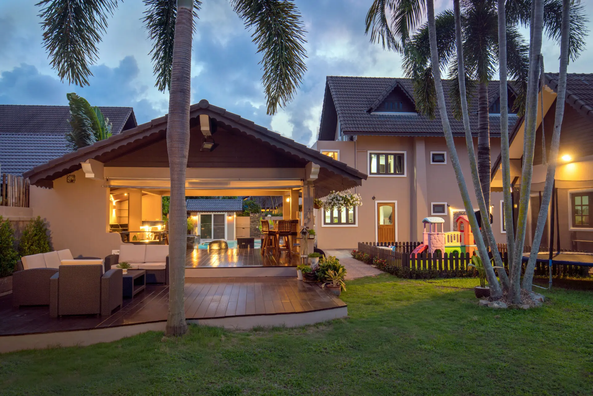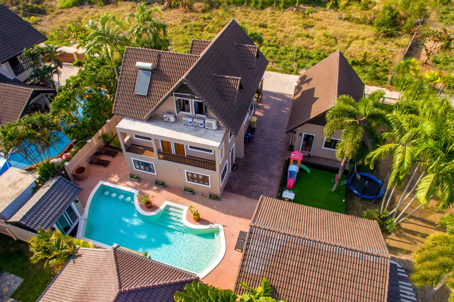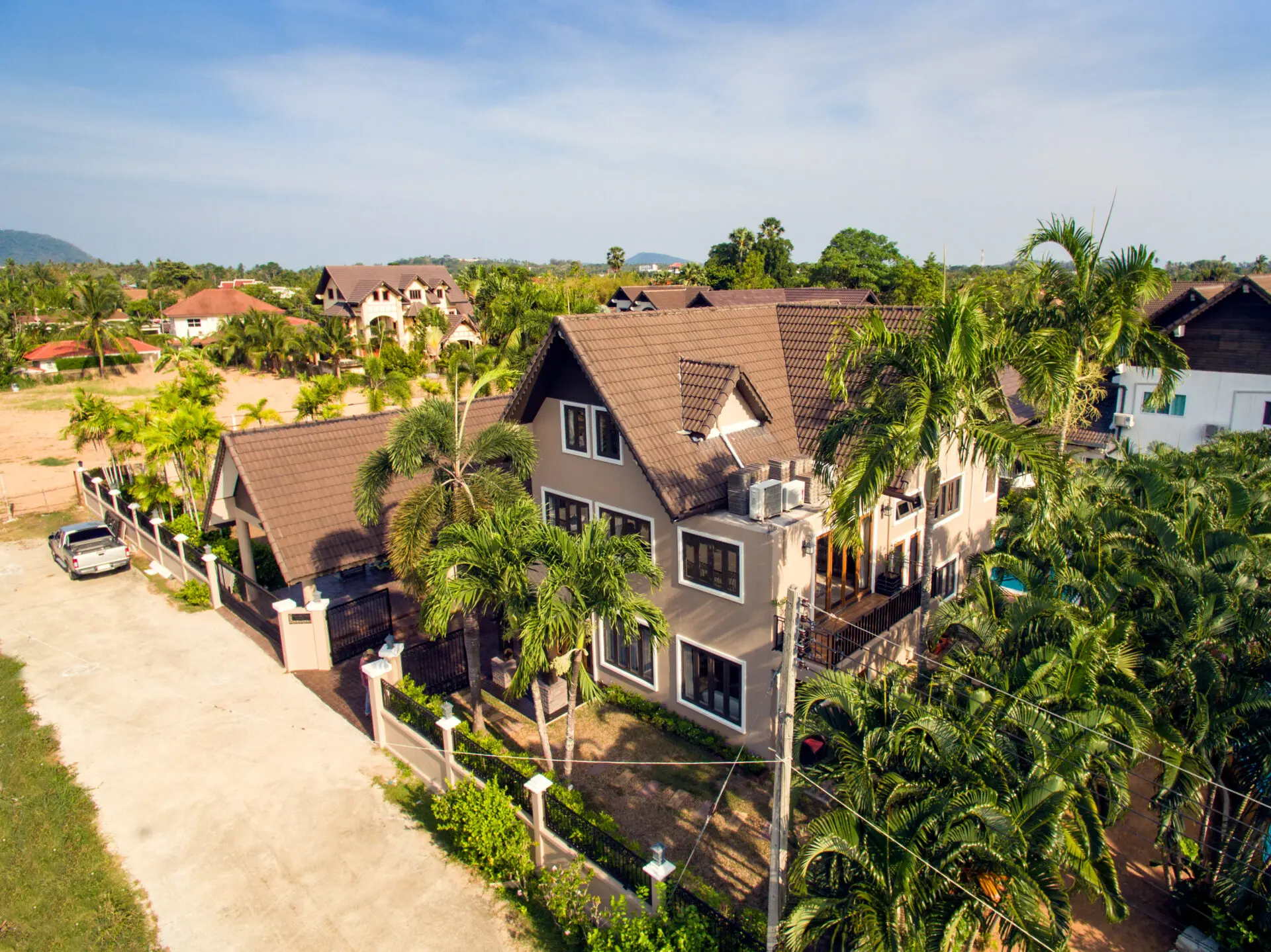 Nestled in the heart of Naiharn, within walking distance to local shops and just moments from the stunning beach, this magnificent Tudor-style family home sprawls across an impressive 1,250 square meters, boasting 5 spacious bedrooms, 4 luxurious bathrooms, two inviting living rooms, an open-plan kitchen with a separate dining room perfect for entertaining, a large private bar complete with a built-in BBQ area, a delightful kids’ play area, a rejuvenating herbal steam room, and a covered carport for two cars, all wrapped in unique Tudor architecture that stands out as potentially the most impressive family residence in all of Rawai.